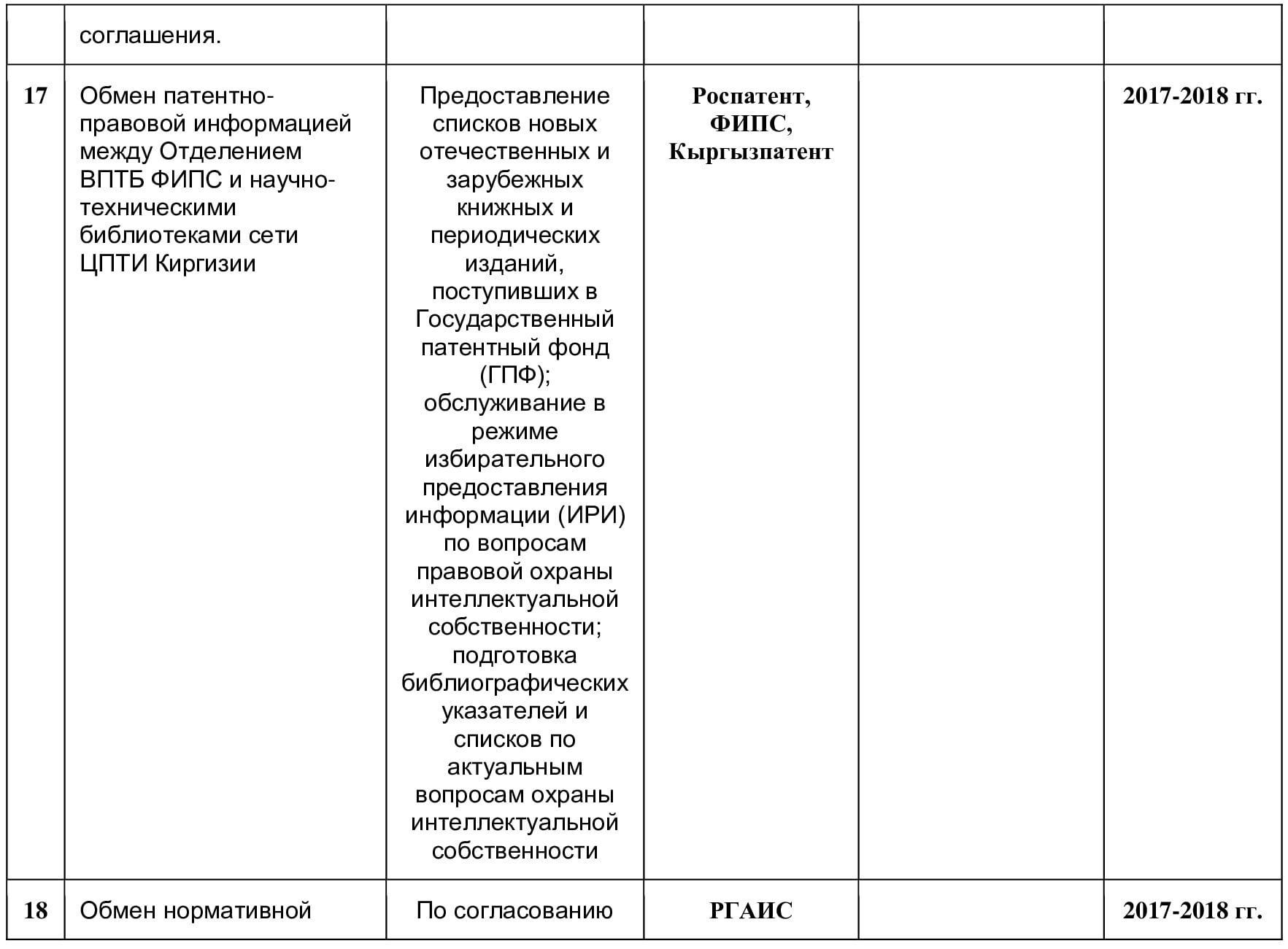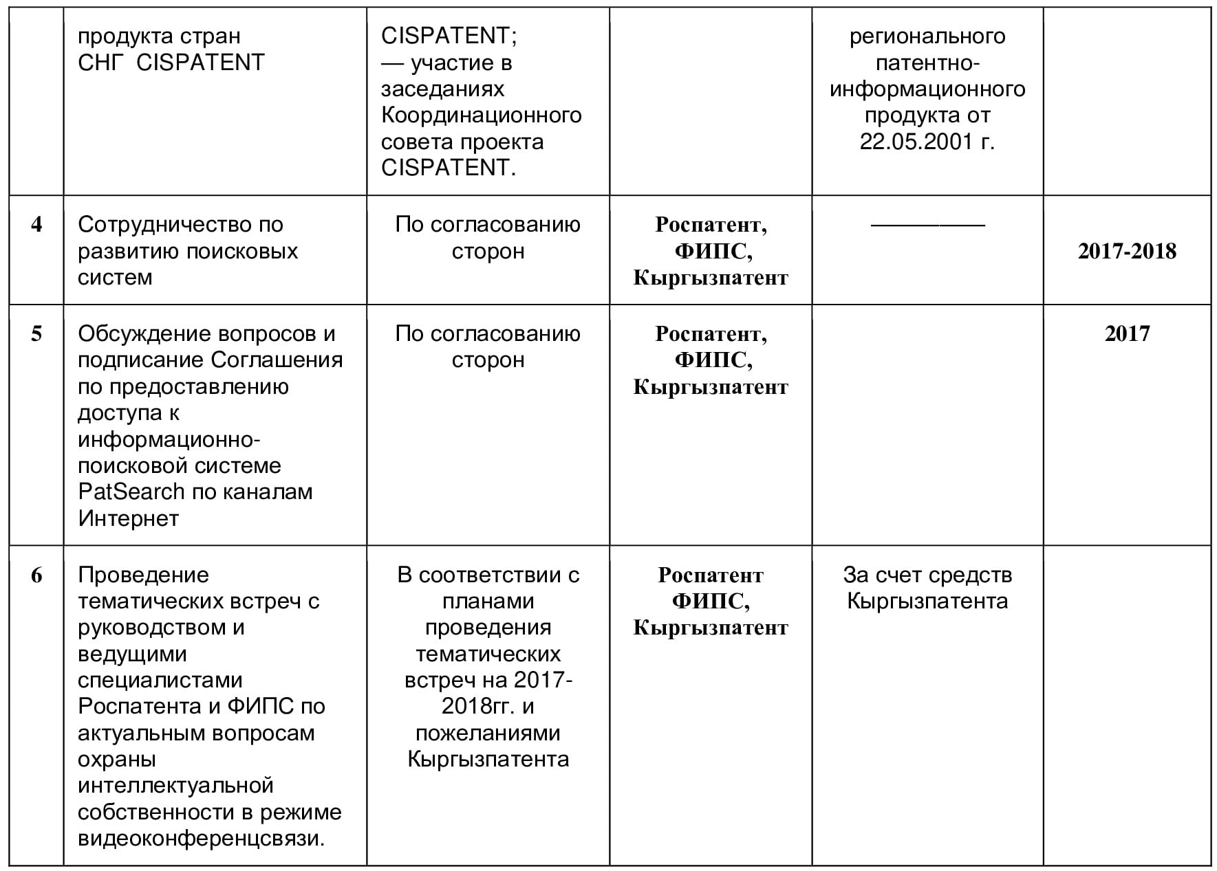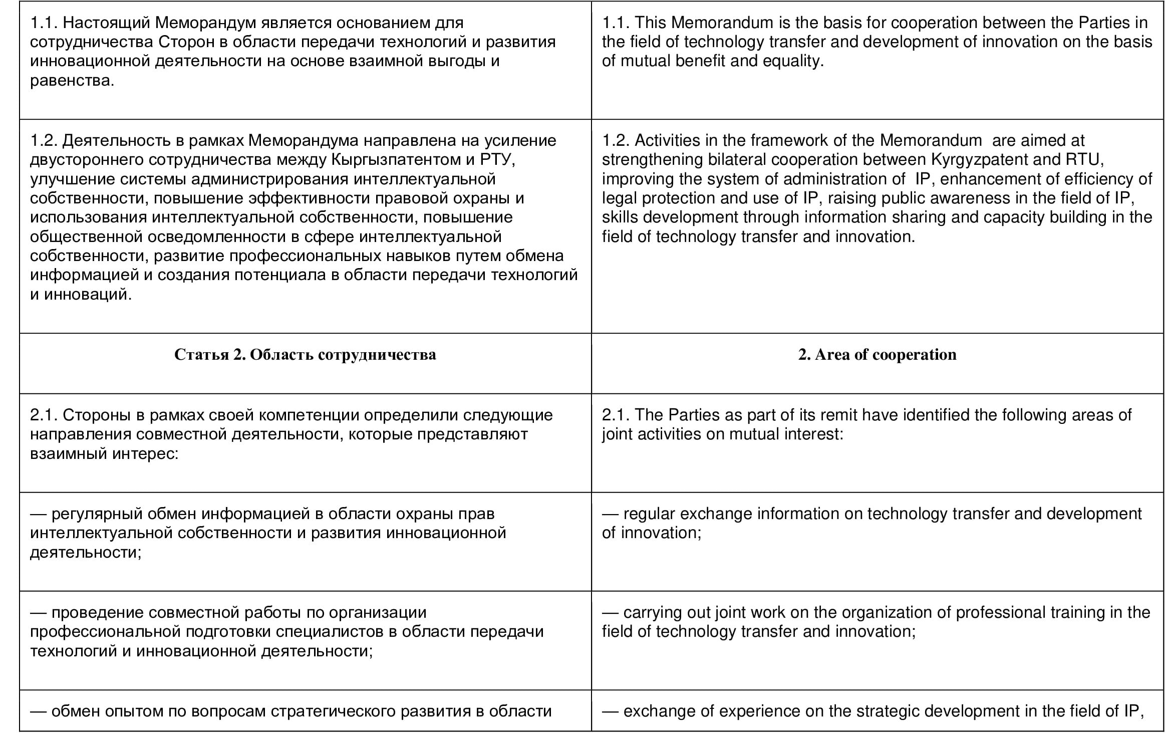 Научно-исследовательский институт государственной патентной экспертизы (далее — НИИГПЭ) и Патентное управление при Госкомитете по науке и новым технологиям Кыргызской Республики (далее Кыргызпатент), именуемые далее «Сторонами», желая содействовать развитию научно-технического сотрудничества в области экспертизы изобретений и других объектов промышленной собственности, договорились о нижеследующем: