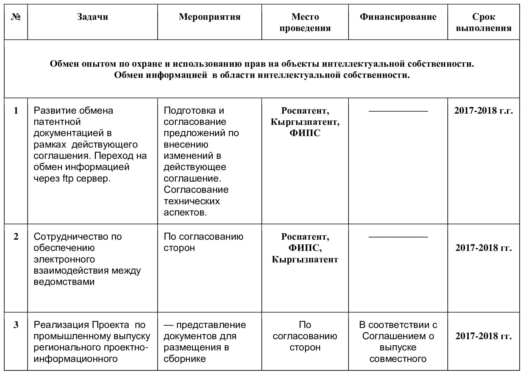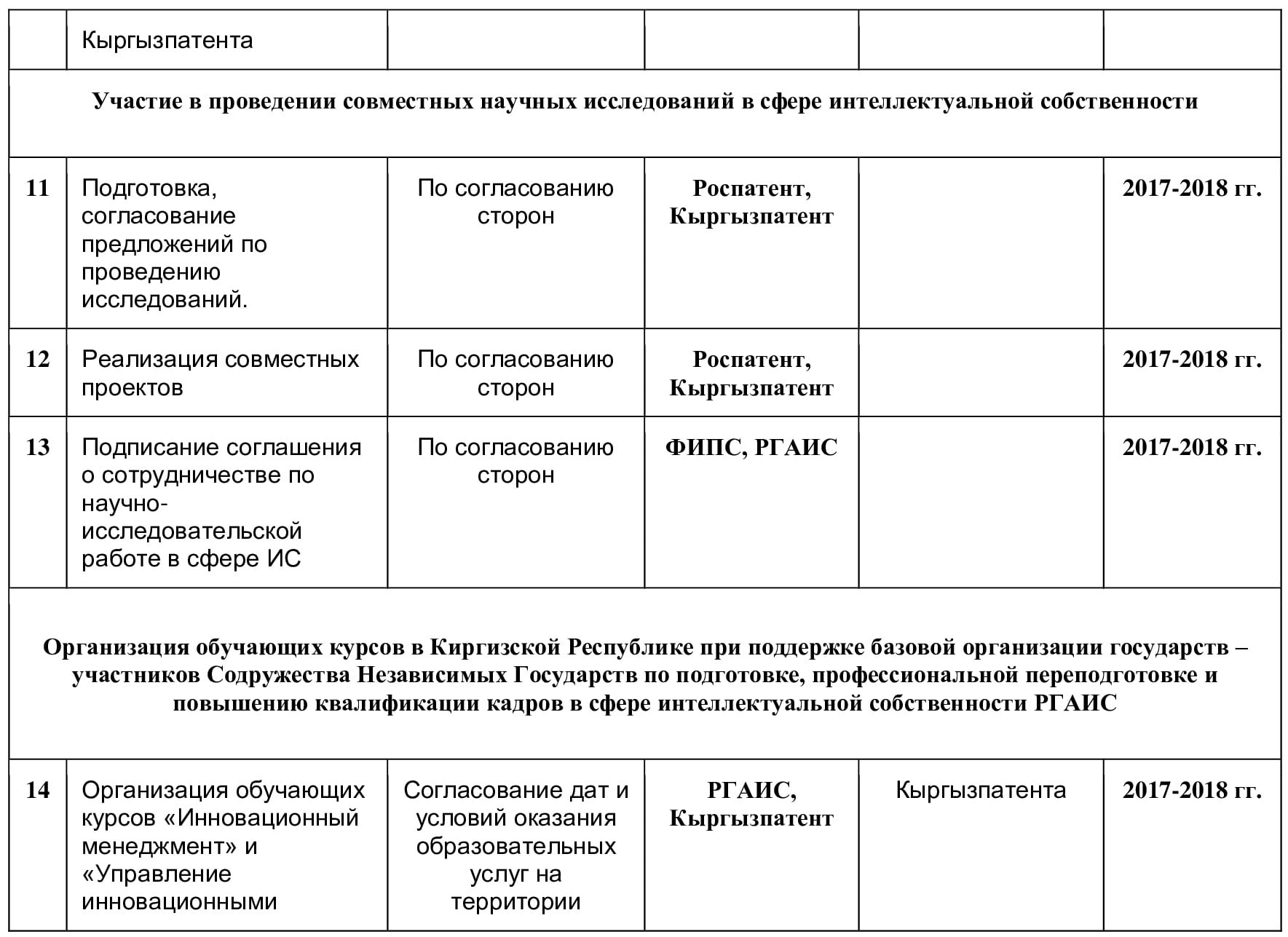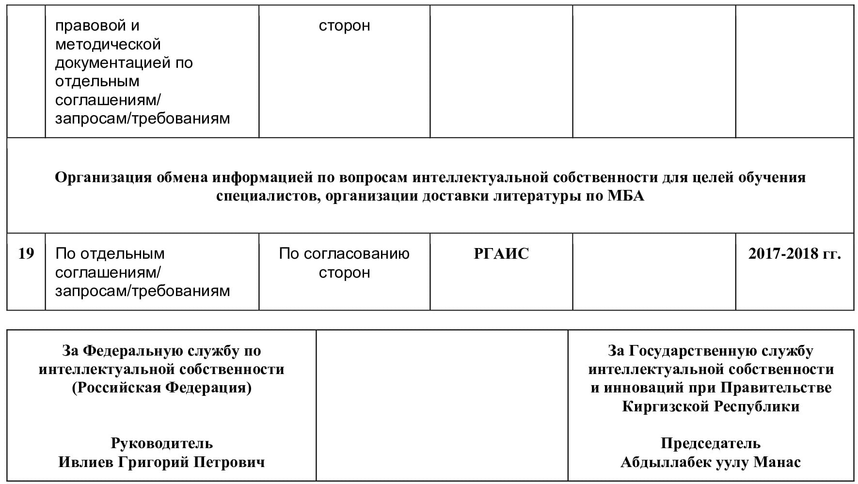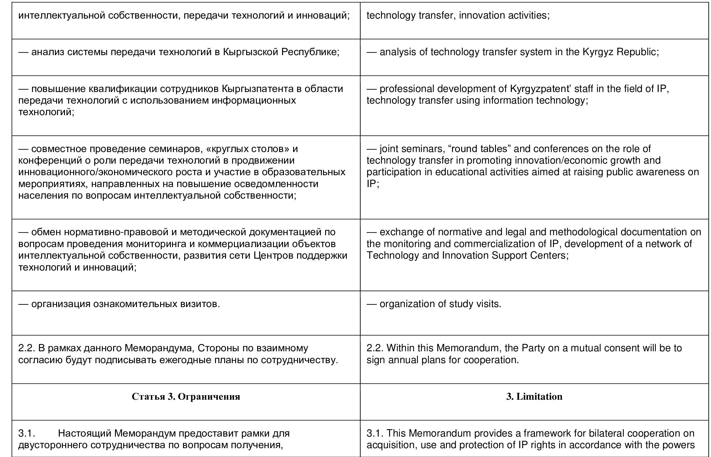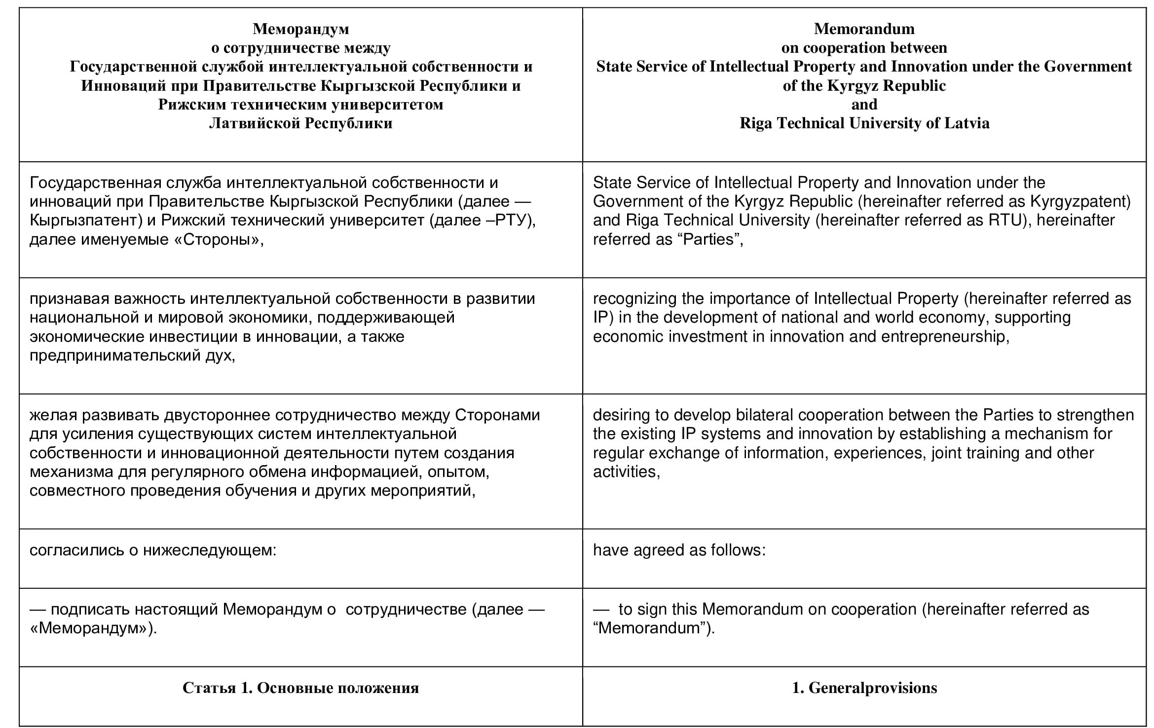 Государственное агентство интеллектуальной собственности при Правительстве Кыргызской Республики (Кыргызпатент) и Центр международного обучения по промышленной собственности (Страсбург), именуемые в дальнейшем Сторонами,